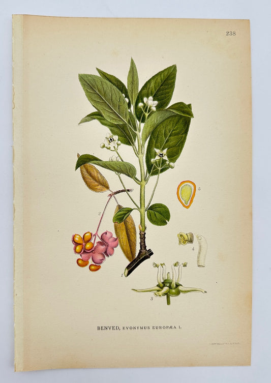 Antique Print - Carl Lindman - European Spindle - Euonymus Europaeus - F4