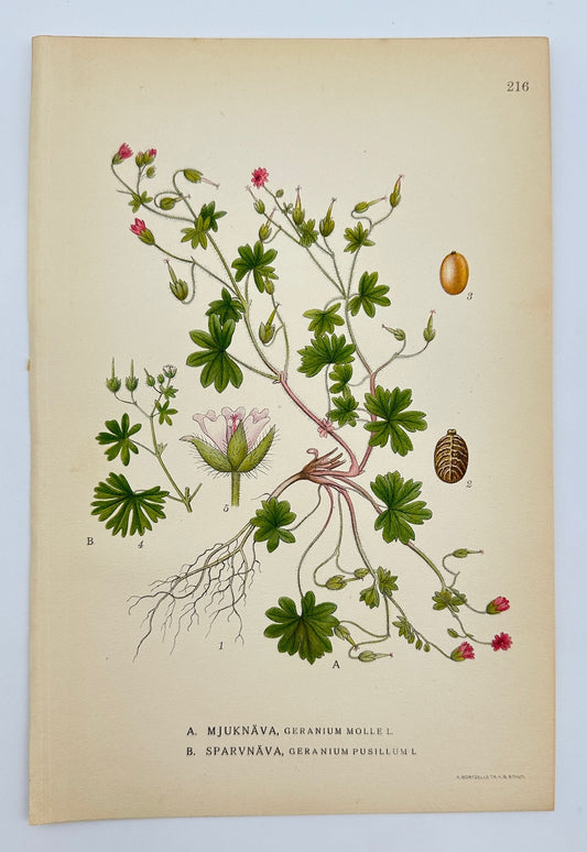 Antique Print - Carl Lindman - Soft Crane's-bill and Small Crane's-bill - F4