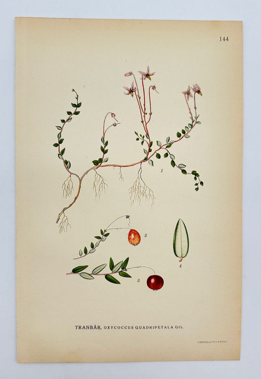 Antique Print - Carl Lindman - Small Cranberry - Oxycoccus Quadripetalus - F4