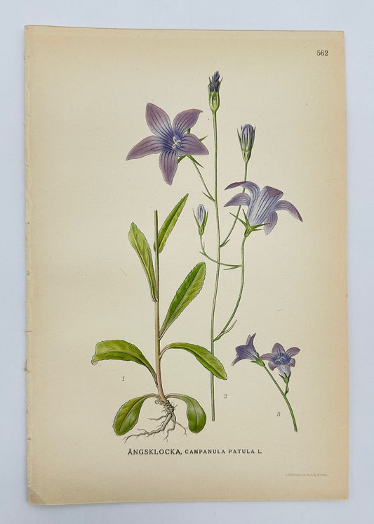 Antique Print - Carl Lindman - Spreading Bellflower - Campanula Patula - F4
