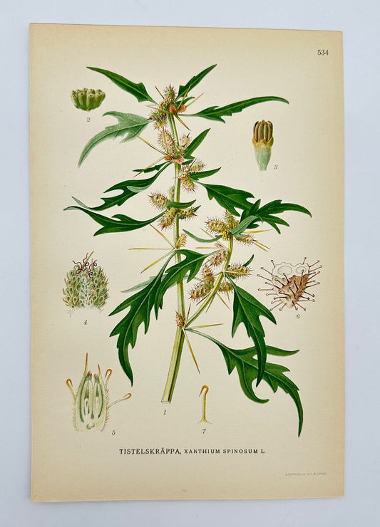 Antique Print - Carl Lindman - Spiny Cocklebur - Xanthium Spinosum - F4