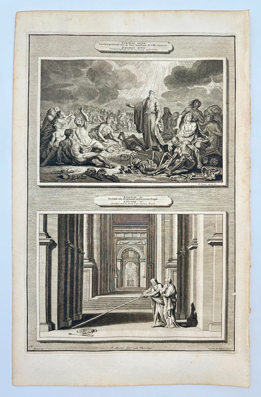 Antique Print - Ezekiel Prophesies Over Bones That are Resurrected - F5