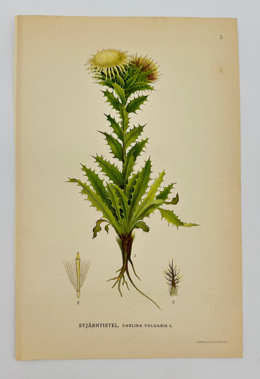 Antique Botanical Print - Carl Lindman - Carlina Vulgaris - Carline Thistle - F4