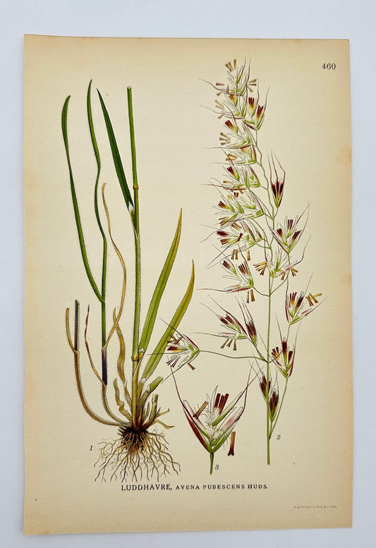 Antique Botanical Print - Carl Lindman - Downy Oat - Avena Pubescens - F4