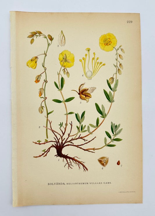 Antique Botanical Print - Carl Lindman - Common Rock-rose - Viola Biflora - F4
