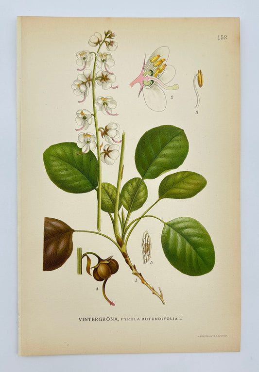 Antique Print - Lindman - Round-leaved Wintergreen - Pyrola Rotundifolia - F4