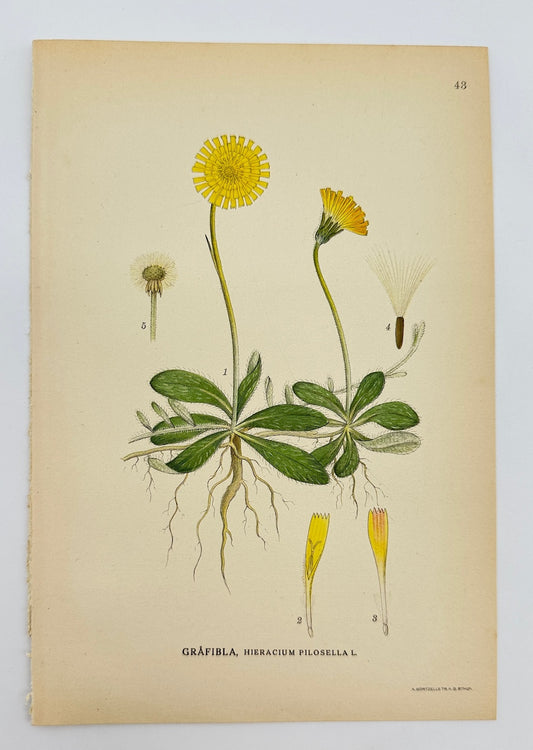 Antique Print - Lindman - Mouse-ear Hawkweed - Hieracium Pilosella - F4