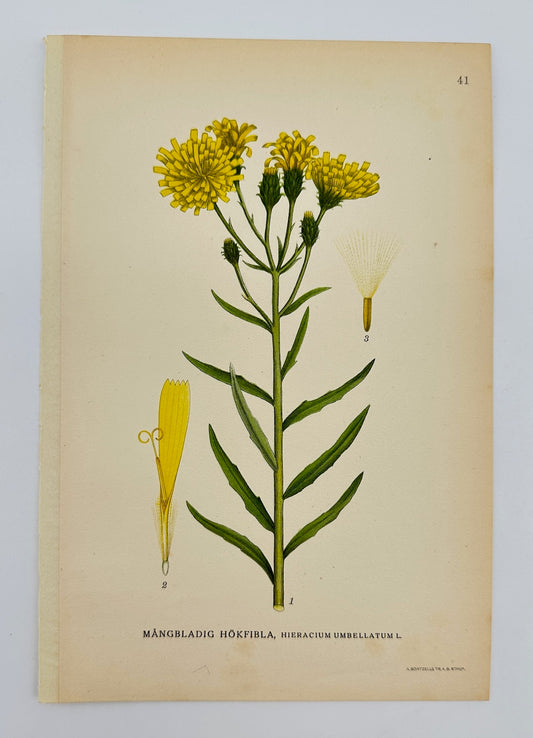 Antique Print - Lindman - Narrow-leaved Hawkweed - Hieracium Umbellatum - F4