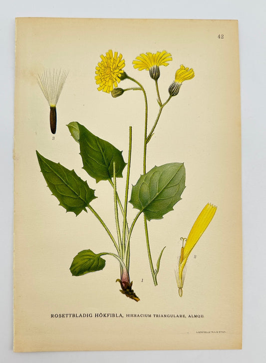 Antique Print - Lindman - Rosette-leaved Hawkweed - Hieracium Triangulare - F4