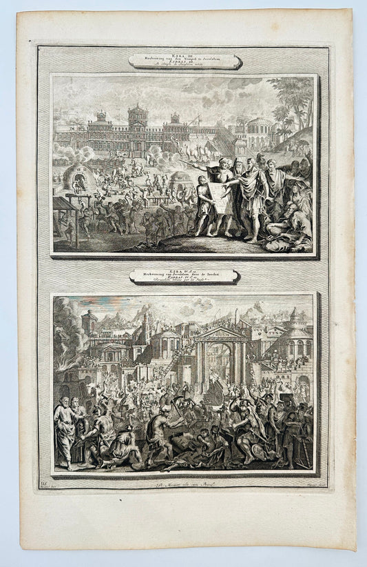 Antique Print - Pierre Mortier - The Reconstruction of the Temple - F5
