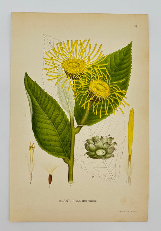 Antique Botanical Print - Carl Lindman - Elecampane - Inula Helenium - F4