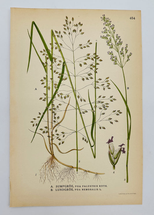 Antique Botanical Print - Carl Lindman - Fowl Bluegrass and Wood Bluegrass - F4