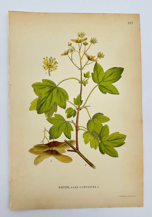 Antique Botanical Print - Carl Lindman - Field Maple - Acer Campestre - F4