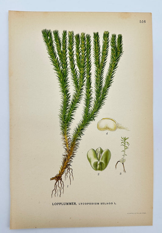 Antique Botanical Print - Carl Lindman - Fir Clubmoss - Lycopodium Selago - F4