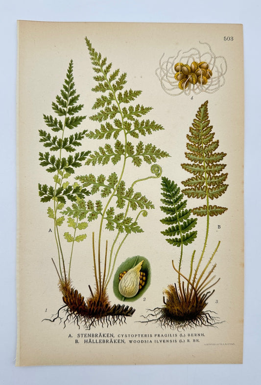 Antique Botanical Print - Carl Lindman - Fragile Fern and Rusty Woodsia - F4