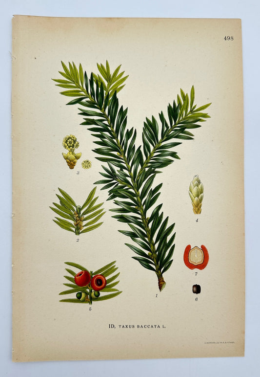 Antique Botanical Print - Carl Lindman - English Yew - Taxus Baccata - F4