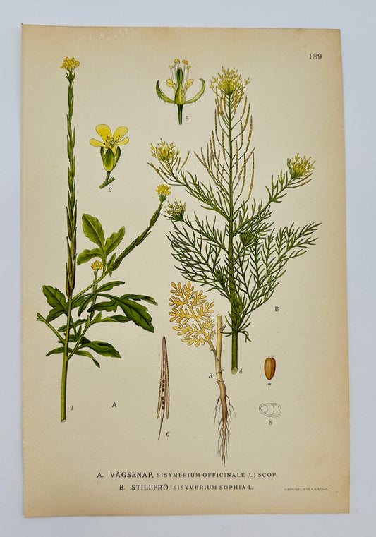 Antique Botanical Print - Carl Lindman - Hedge Mustard and Flixweed - F4