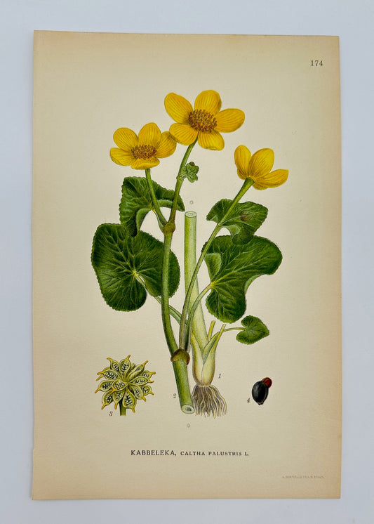 Antique Botanical Print - Carl Lindman - Marsh Marigold - Caltha Palustris - F4