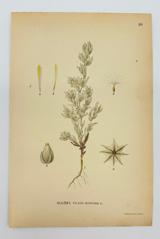 Antique Botanical Print - Carl Lindman - Mountain Cudweed - Filago Montana - F4