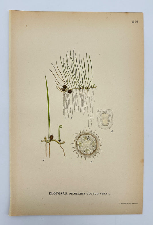 Antique Botanical Print - Carl Lindman - Pillwort - Pilularia Globulifera - F4