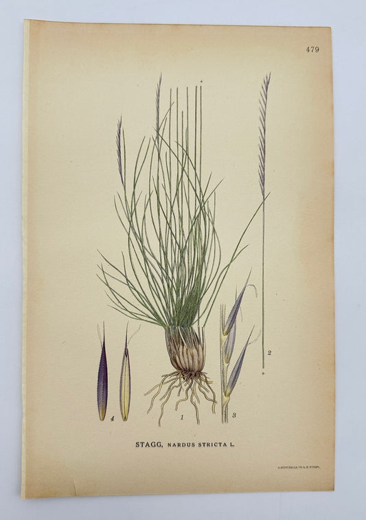 Antique Botanical Print - Carl Lindman - Mat-grass - Nardus Stricta - F4
