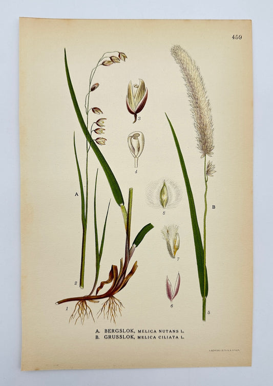Antique Botanical Print - Carl Lindman - Mountain Melick and Fringed Melic - F4