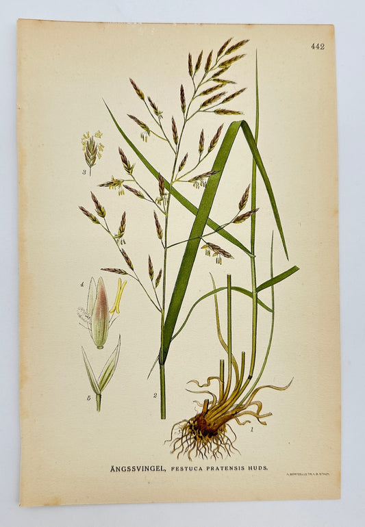Antique Botanical Print - Carl Lindman - Meadow Fescue - Festuca Pratensis - F4