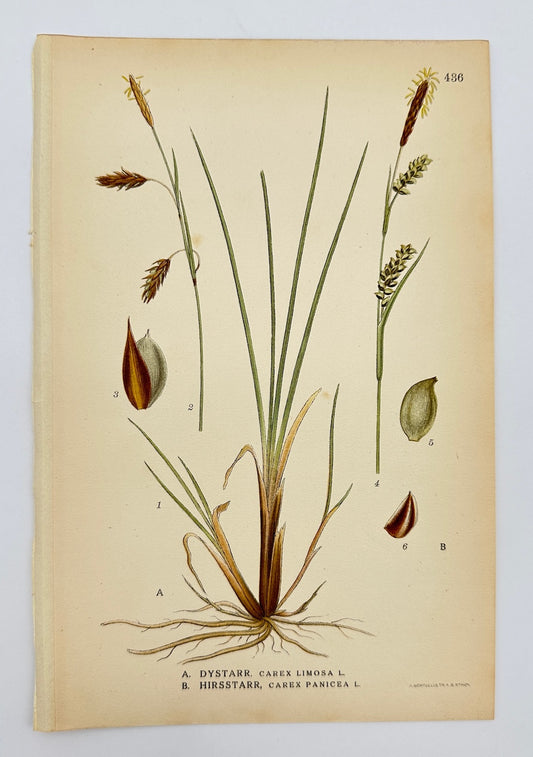 Antique Botanical Print - Carl Lindman - Mud Sedge and Carnation Sedge - F4