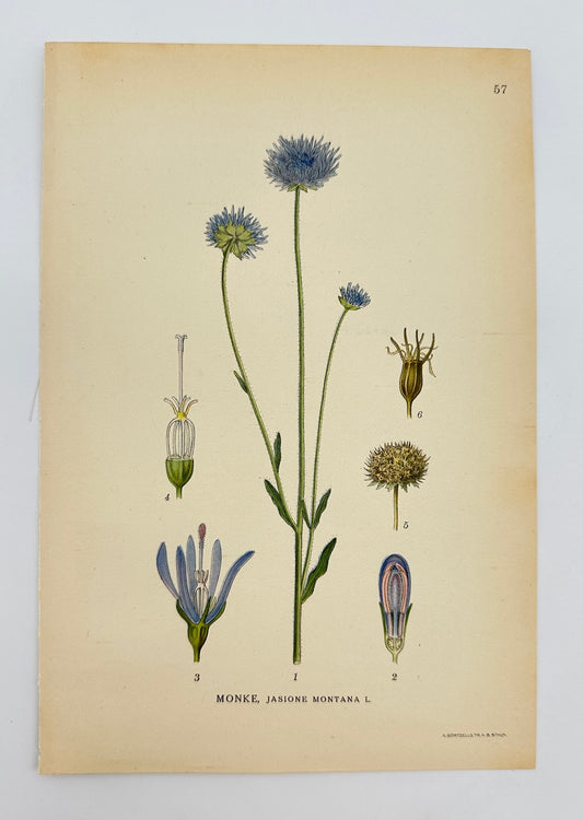 Antique Botanical Print - Carl Lindman - Sheep's Bit - Jasione Montana - F4