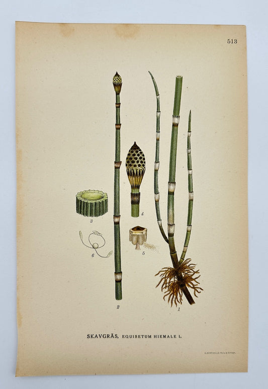 Antique Botanical Print - Carl Lindman - Scouring Rush - Equisetum Hiemale - F4