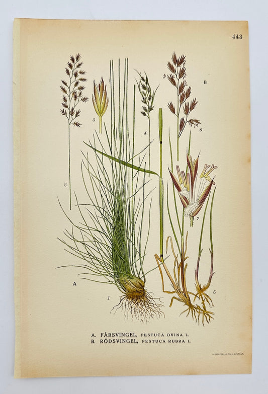 Antique Botanical Print - Carl Lindman - Sheep's Fescue and Red Fescue - F4