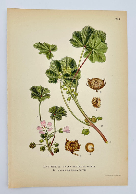Antique Botanical Print - Carl Lindman - Small Mallow and Common Mallow - F4