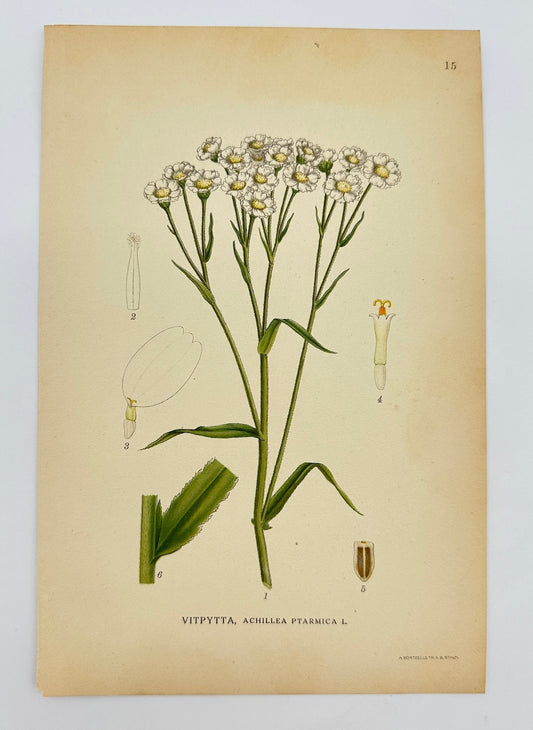Antique Botanical Print - Carl Lindman - Sneezewort - Achillea Ptarmica - F4