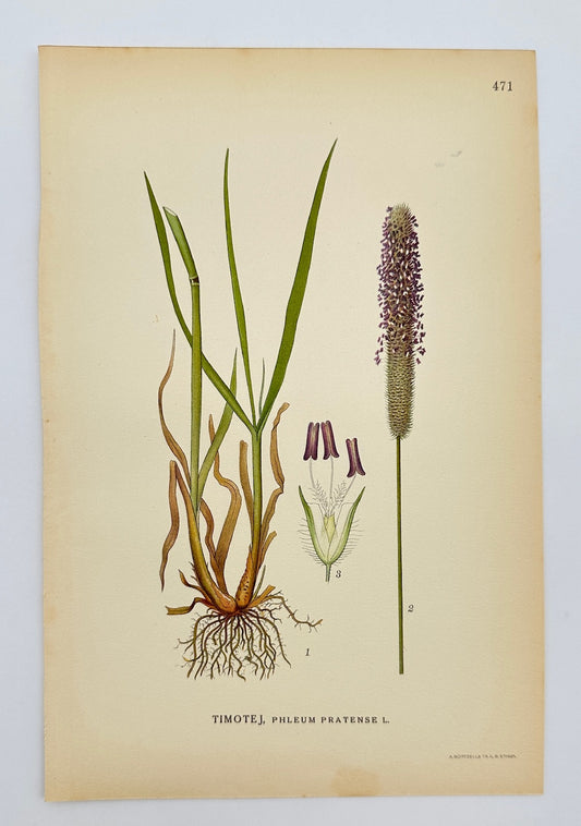 Antique Botanical Print - Carl Lindman - Timothy Grass - Phleum Pratense - F4