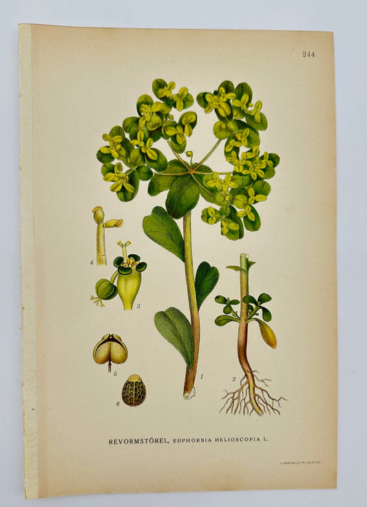 Antique Botanical Print - Carl Lindman - Sun Spurge - Euphorbia Helioscopia - F4