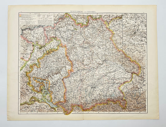 Original Antique Map - Richard Andree - Germany - Wurttemberg and Bavaria - G3