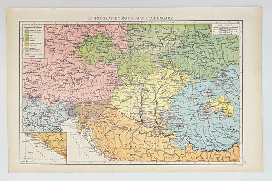 Original Antique Map - Richard Andree - Ethnographic Map of Austria-Hungary - G3