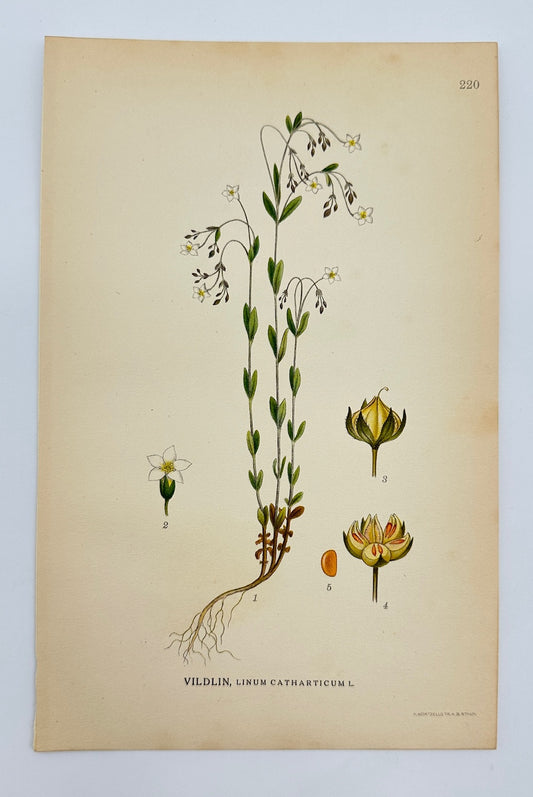 Original Antique Print - Carl Lindman - Fairy Flax - Linum Catharticum - F4