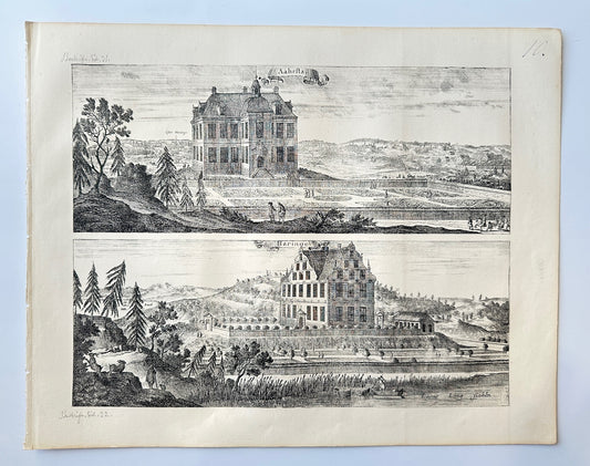 Original Antique Topographical - Erik Dahlberg - View of Haringe Castle - E1