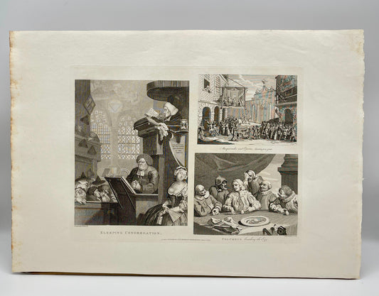 Antique Caricature Engraving - William Hogarth - Sleeping Congregation - E5