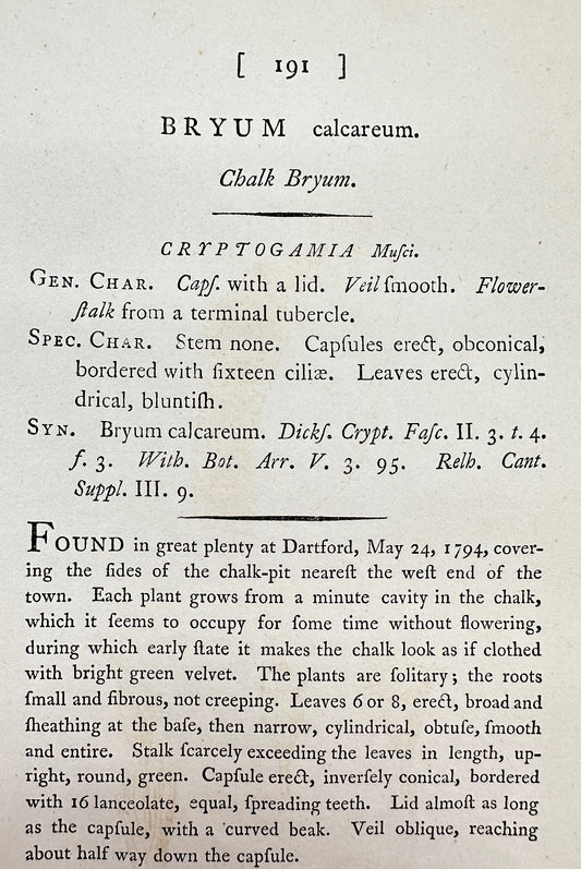Antique Botanical Print - James Sowerby - Bryum Calcareum - Chalk Bryum - F1