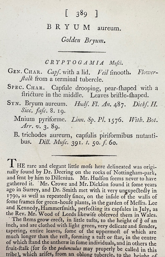 Antique Botanical Print - James Sowerby - Bryum Aureum - Golden Bryum - F1