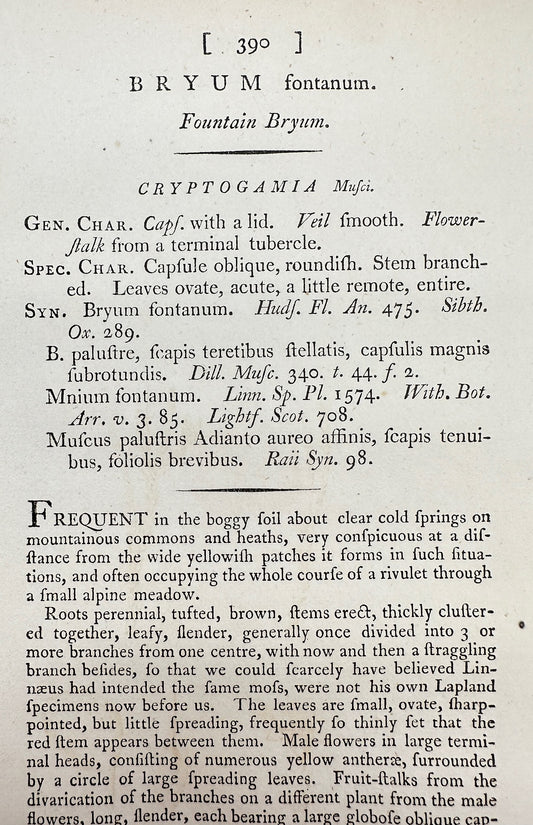 Antique Botanical Print - James Sowerby - Bryum Fontanum - Fountain Bryum - F1
