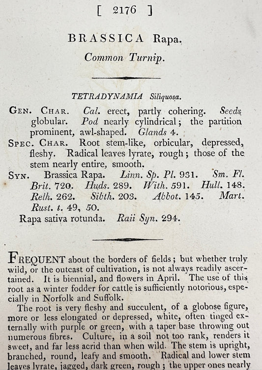 Antique Botanical Print - James Sowerby - Brassica Rapa - Common Turnip - F1