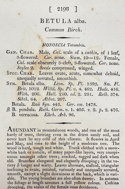Antique Botanical Print - James Sowerby - Betula Alba - Common Birch - F1