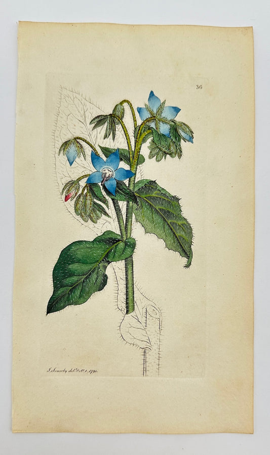 Antique Botanical Print - James Sowerby - Borago Officinalis - Borage - F1