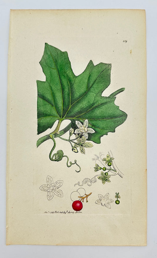 Antique Botanical Print - James Sowerby - Bryonia Dioica - White Bryony - F1