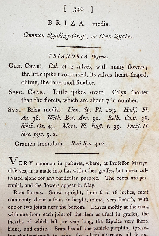 Antique Botanical Print - James Sowerby - Briza Media - Cow-Quakes - F1