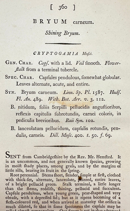 Antique Botanical Print - James Sowerby - Bryum Carneum - Shining Bryum - F1