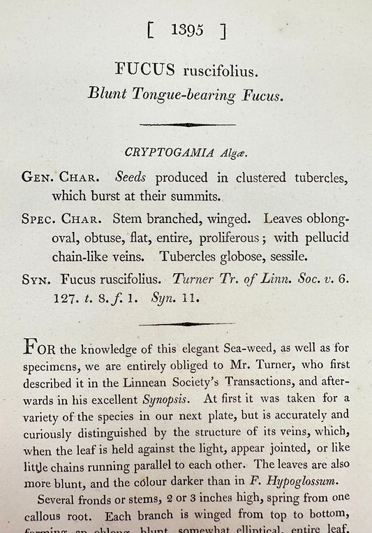 Antique Print - Sowerby - Fucus Ruscifolius - Blunt Tongue-bearing Fucus - F1